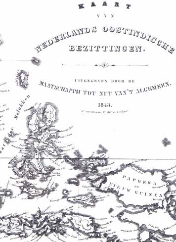 Figure 1. Map extract of ‘Kaart van Nederlands Oostindische Bezittingen’, by Dl. Veelwaard Jr., 1843, published by Maatschappij tot Nut van ’t Algemeen (‘Society for Public Welfare’), 33 x 64.5 cm, scale circa 1 : 7.000.000.