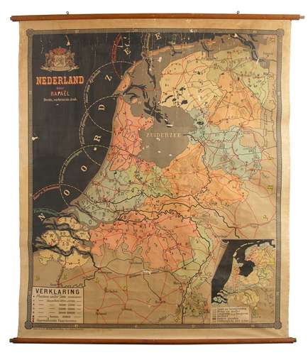 5. Schoolwandkaart 'Nederland' van Rafaël uitgegeven door het R.K. Jongensweeshuis te Tilburg en gedrukt door W.R. Casparie en Zoon te Groningen (derde druk, ca. 1912, 6 bladen, 178 x 151 cm, schaal ca. 1:180.000).