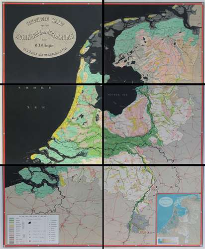7. 'Geologische kaart van het Koninkrijk der Nederlanden' van C.A.C. Kruyder uitgegeven door De Erven J.J. Tijl te Zwolle (1880, schaal 1:400.000, Bijzondere Collecties Bibliotheek Universiteit van Amsterdam). De kaart is een verkleinde uitgave van de 'Geologische Schoolkaart etc.' (eerste druk, 1878, schaal 1:200.000). Beide kaarten hebben een zwarte zee.