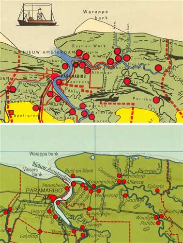 -Rond Paramaribo is de kaart overvol en van een afstand onduidelijk;