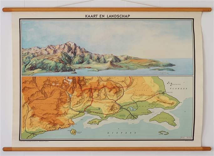 Een 'typenkaart' kan echter nog efficiënter worden ingezet als naast of onder het landschap de kaart van dat gebied wordt geplaatst. De kunst van het kaartlezen moet namelijk worden aangeleerd, en de directe vergelijking van landschap en kaart is daarvoor ideaal. De befaamde schoolcartograaf H. Haack en de bekende kaartenuitgever Justus Perthes in Gotha zagen wel wat in dit concept maar vonden denkbeeldige landschappen wellicht beneden hun stand. Ze kwamen met een serie getiteld Bild und Karte van vijf grote schoolwandkaarten (1914-1927) met schilderingen en kaarten van bestaande landschappen. Deze wandkaarten imponeren, zijn bijzonder leerzaam en behoren tot de cartografische top, maar de aanschaf van één zo'n kaart, laat staan de hele serie, was voor maar weinig scholen in Nederland financieel haalbaar. De schoolcartograaf P. Eibergen, in Nederland niet minder befaamd dan Haack, en de Groningse uitgever Wolters, in Nederland niet minder bekend dan Justus Perthes, kwamen in 1954 met een praktischer oplossing. Ze gebruikten wel een denkbeeldig landschap, hadden dus maar één kaart nodig, noemden deze Kaart en landschap en behaalden er een groot succes mee.