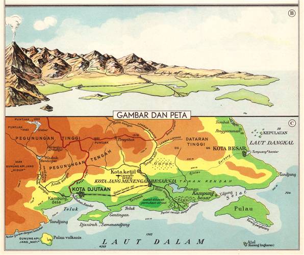 Eerste kaart in de Atlas Indonesia van Bachtiar uitgegeven door Wolters in 1953.