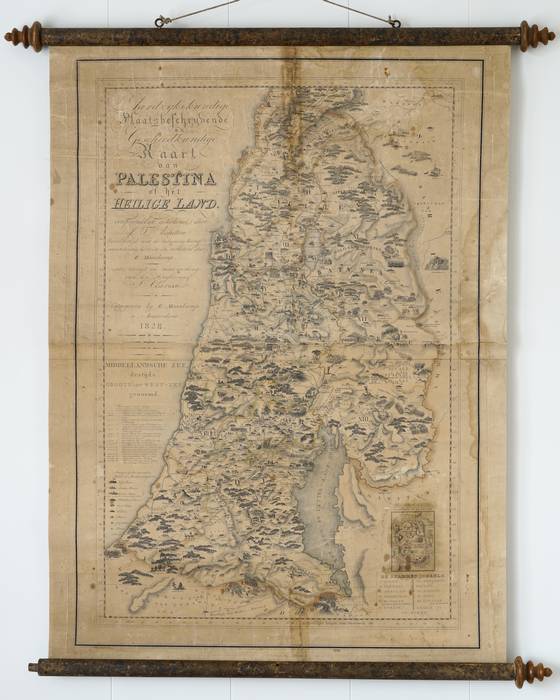 XL 'Eene kaart uit de middeleeuwen, in het een of ander klooster gevonden': Maaskamps wandkaart van Palestina uit 1828