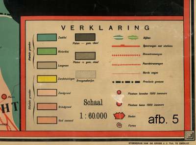 Het is dan ook des te opmerkelijker dat in de tweede druk (1905) van deze geologische kaart een storende fout is geslopen in de 'Verklaring' (zie afb. 5). De relatief jonge grondsoorten 'zandstuivingen' en 'oud zeezand' worden namelijk bij de 'diluviale gronden' gerekend, en niet bij de 'aluviale gronden' (zoals bij Staring, Kruyder en anderen). Een fout die niet verklaard kan worden door een verkeerde plaatsing van de accolades. In de eerste druk (1888) is deze fout niet aanwezig, aangezien daar de grondsoorten niet worden toegewezen aan een van deze twee tijdvakken. Had Kloeke die toewijzing maar wel gedaan. De Leidse hoogleraar chemie met specialisatie geologie, J.M. van Bemmelen, met wie Kloeke overlegd heeft bij het ontwerp van de eerste druk, had hem in dat geval nog op het rechte pad kunnen brengen. We kunnen eruit afleiden, dat ook een zorgvuldig man als Kloeke wel eens een steek kon laten vallen.