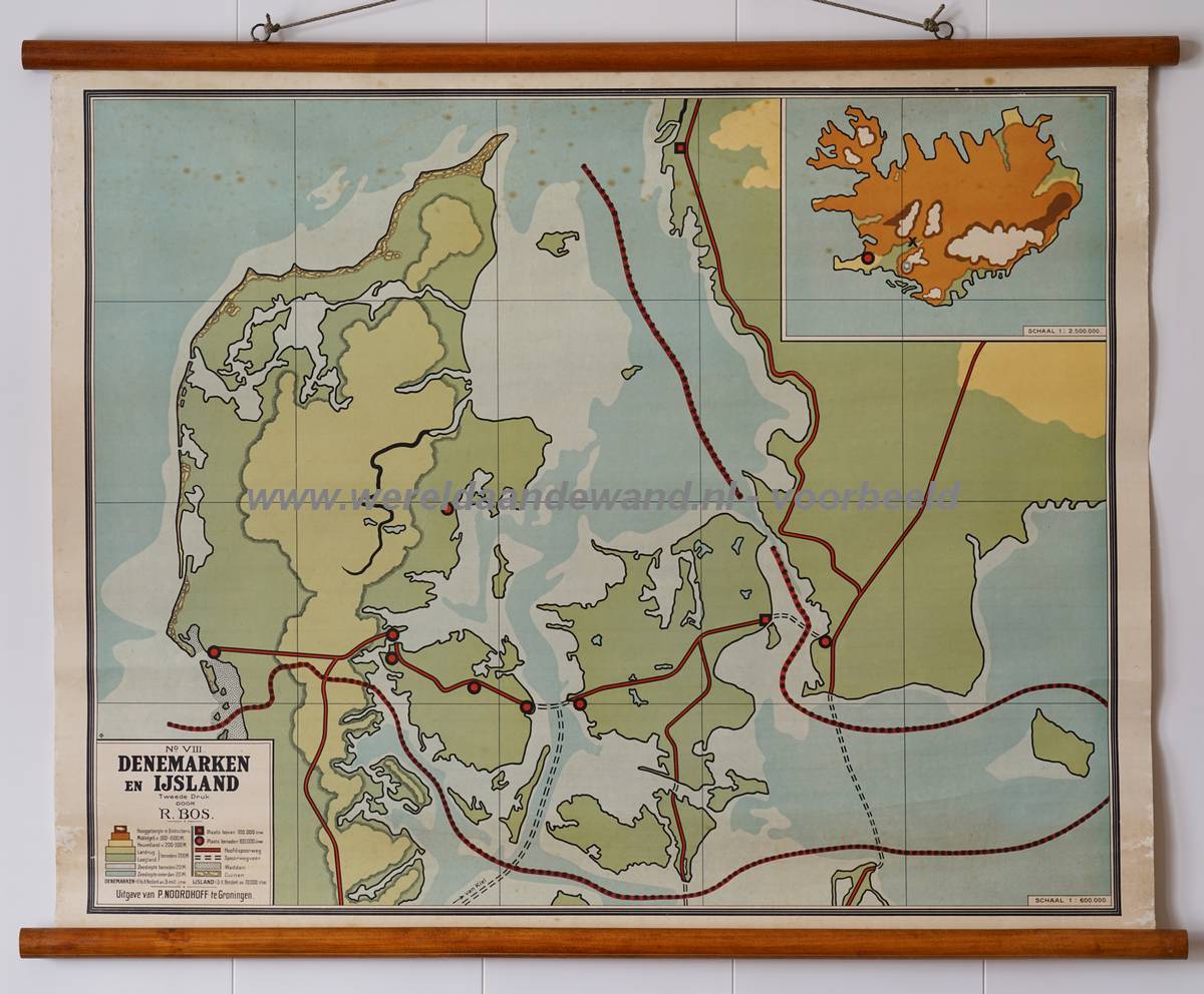 Denemarken en IJsland R. Bos, K. Zeeman, M.L. de Ley jaar: [ 1962 ] druk: 5e omvang: 1 kaartblad hoogte: 74 ( 83 ) cm breedte: 80 ( 92 ) cm schaal 1 : 600.000