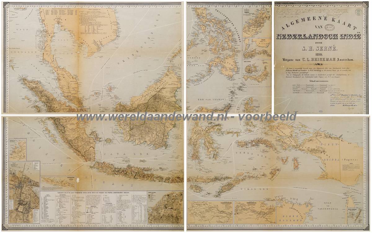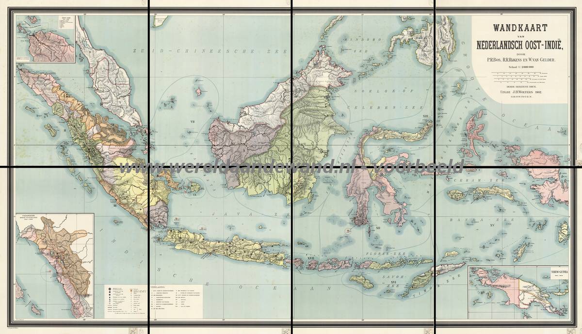 OIN_WO1BWandkaart van Nederlandsch Oost-Indië P.R. Bos, R.R. Rijkens jaar: 1881 druk: [1e] drukker: Groningen : v.d. Weijer omvang: 1 kaart in 12 bladen hoogte (blad): 51 of 55 ( -- ) cm breedte (blad): 55 of 60 ( -- ) cm schaal 1 : 2.000.000