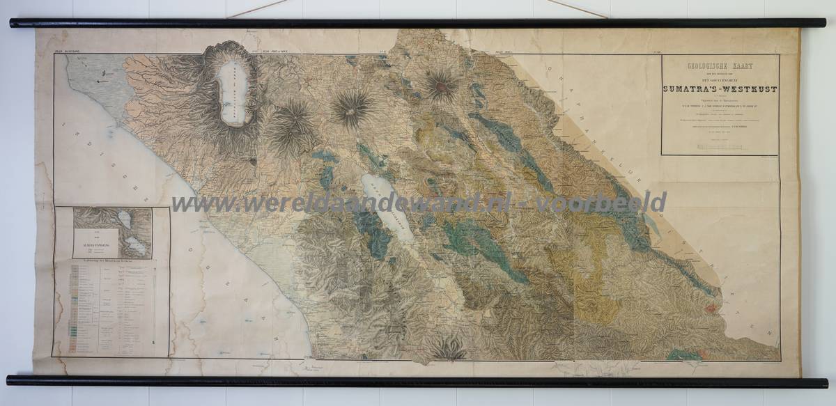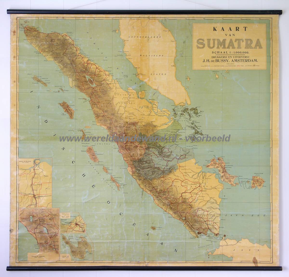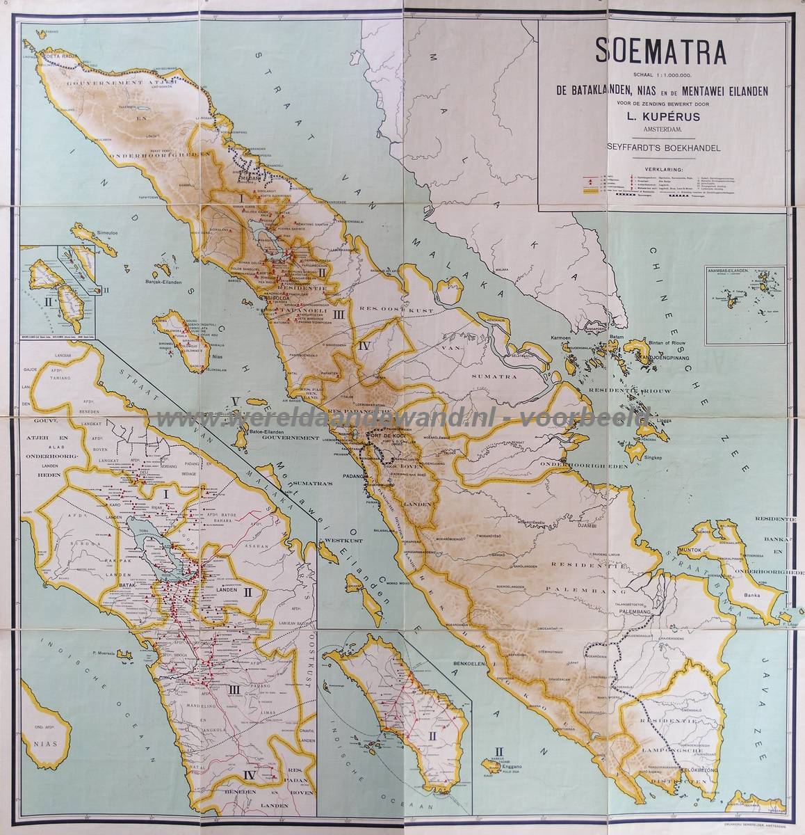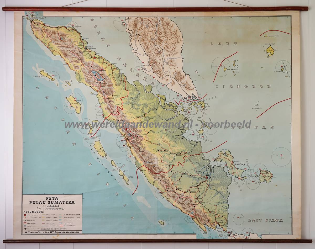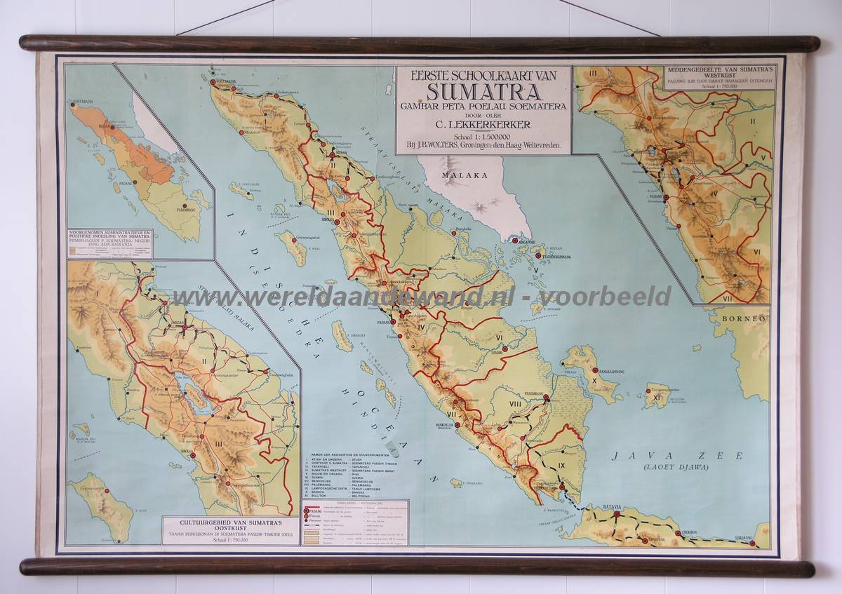 OIN_WO_SEerste schoolkaart van Sumatra (Gambar peta poelau Soematera) C. Lekkerkerker jaar: [ 1928 ] omvang: 1 kaart in 2 bladen hoogte: 97 ( 102 ) cm breedte: 143 ( 154 ) cm schaal 1 : 1.500.000
