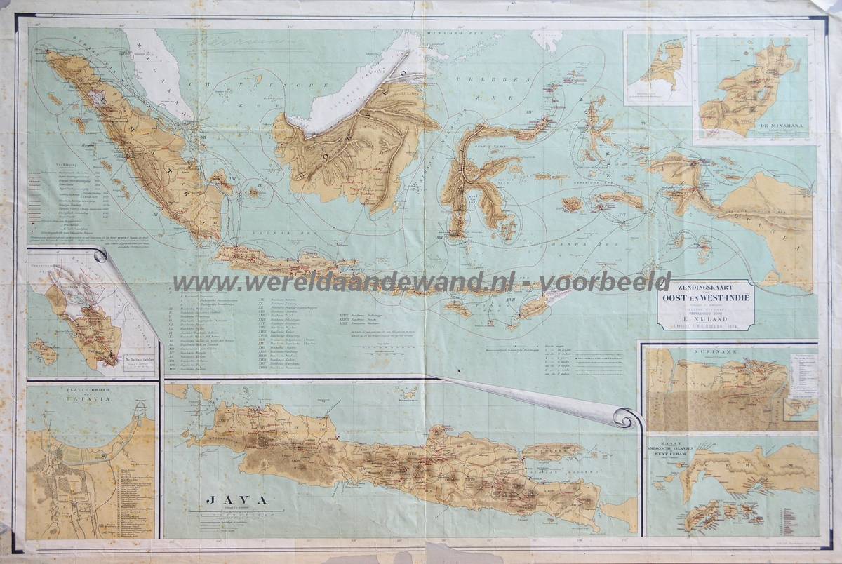 OIN_BY_KZendingskaart van Oost- en West-Indië (kleine uitgaaf) E. Nijland jaar: 1894 drukker: Amsterdam : Gebr. Braakensiek omvang: 1 kaartblad hoogte: 60 ( -- ) cm breedte: 90 ( -- ) cm schaal 1 : 5.600.000