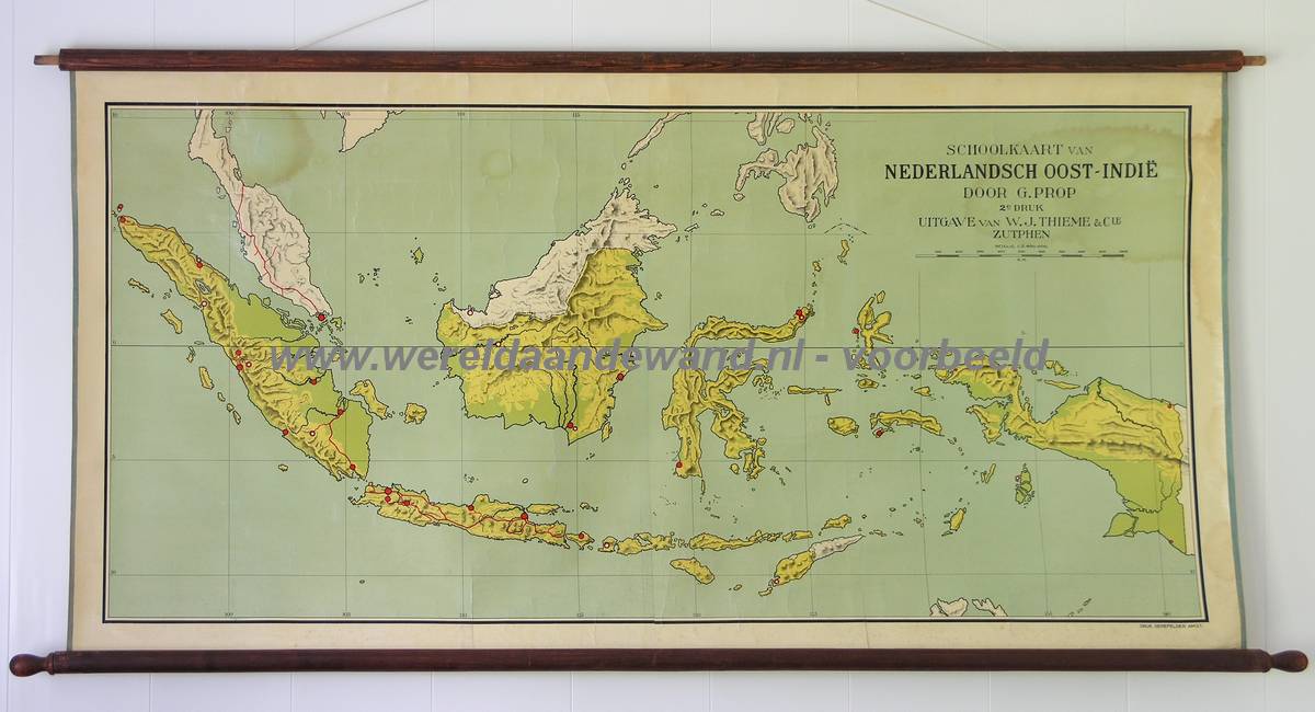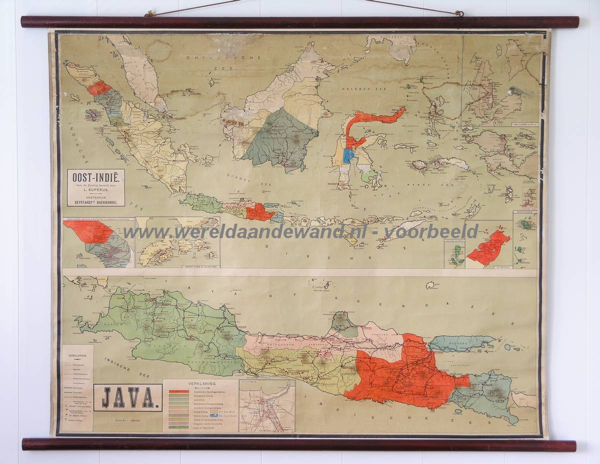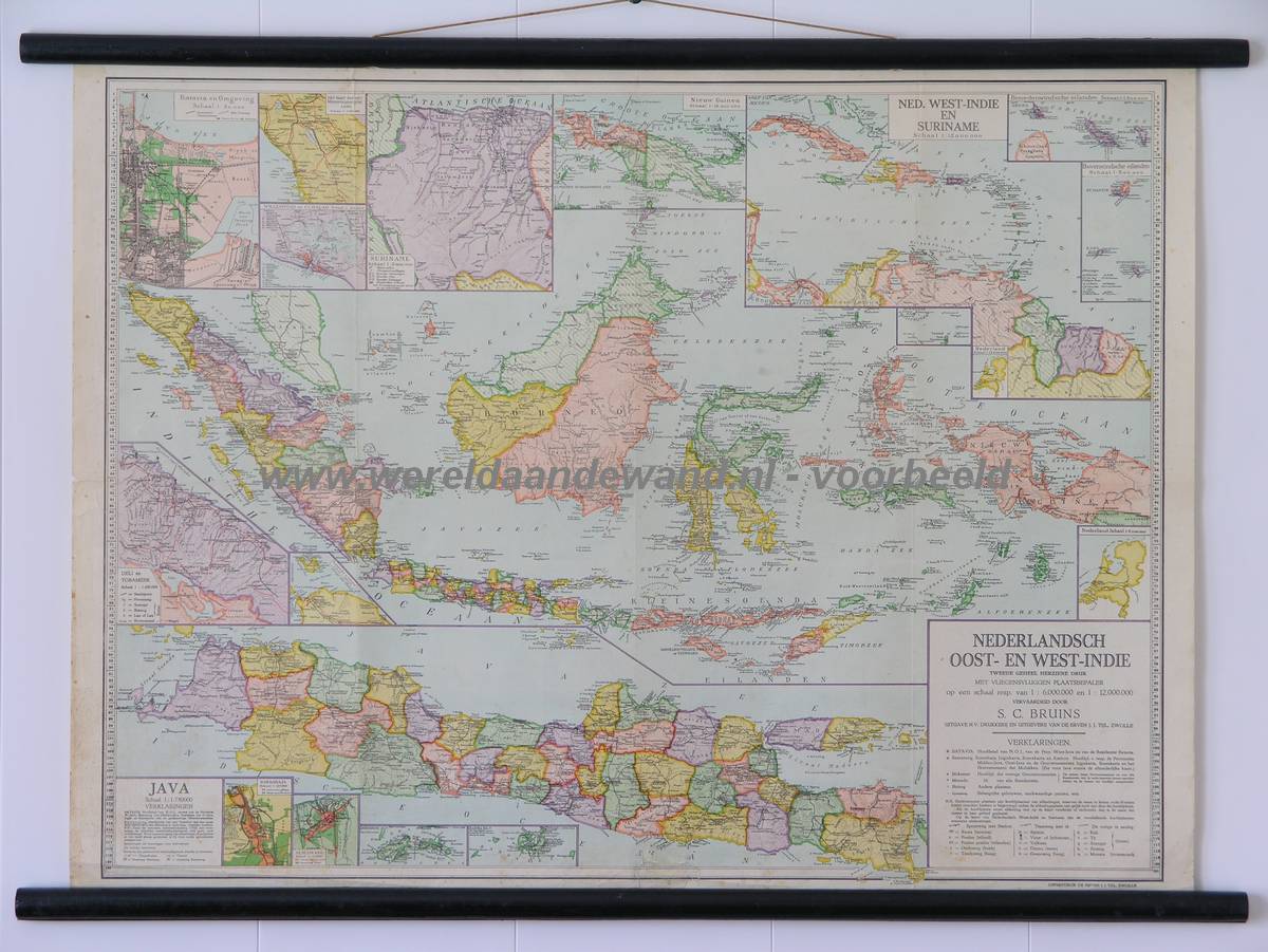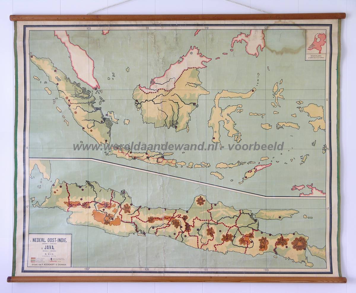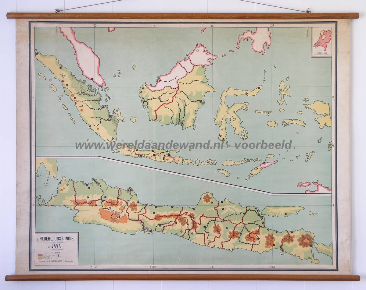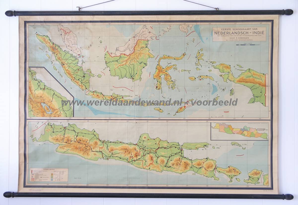 OIN_WO1EEerste schoolkaart van Nederlandsch-Indië met bijkaarten van Java en het cultuurgebied van S.O.K. P. Eibergen jaar: [ 1942 ] druk: [1e] omvang: 1 kaart in 2 bladen hoogte: 101 ( 113 ) cm breedte: 152 ( 163 ) cm schaal 1 : 3.500.000