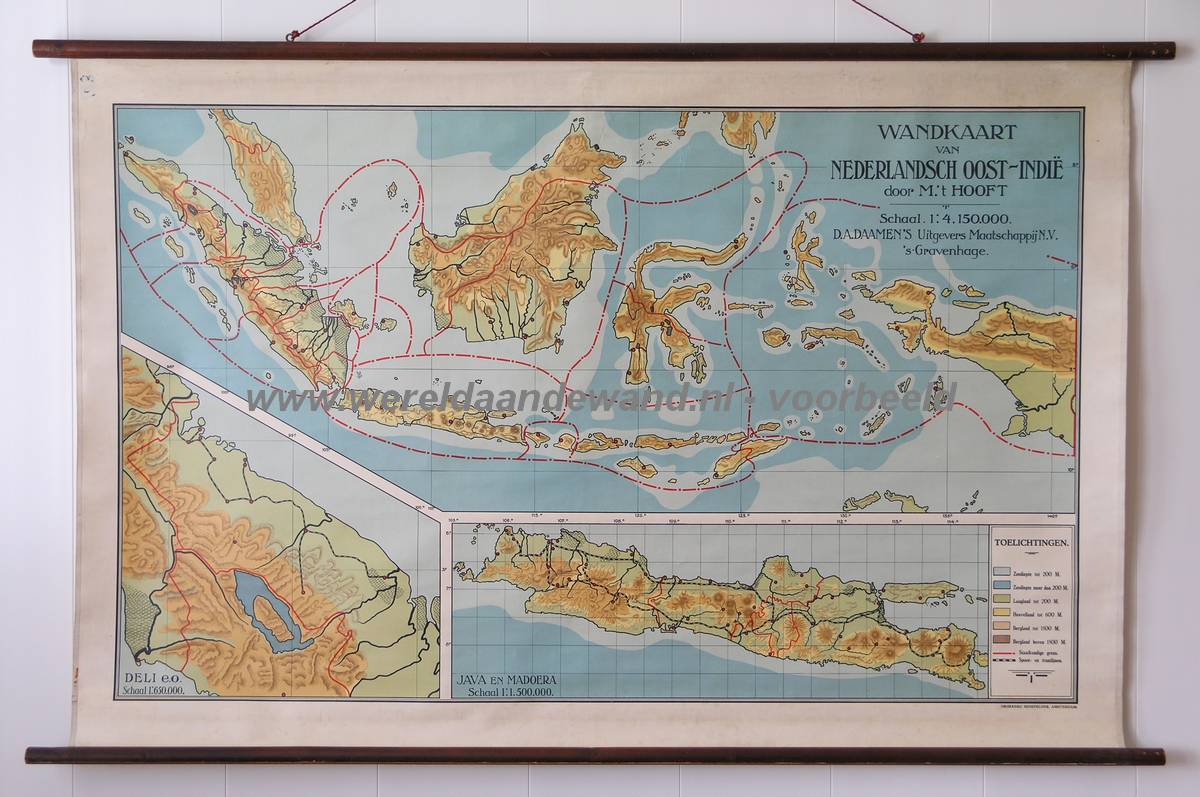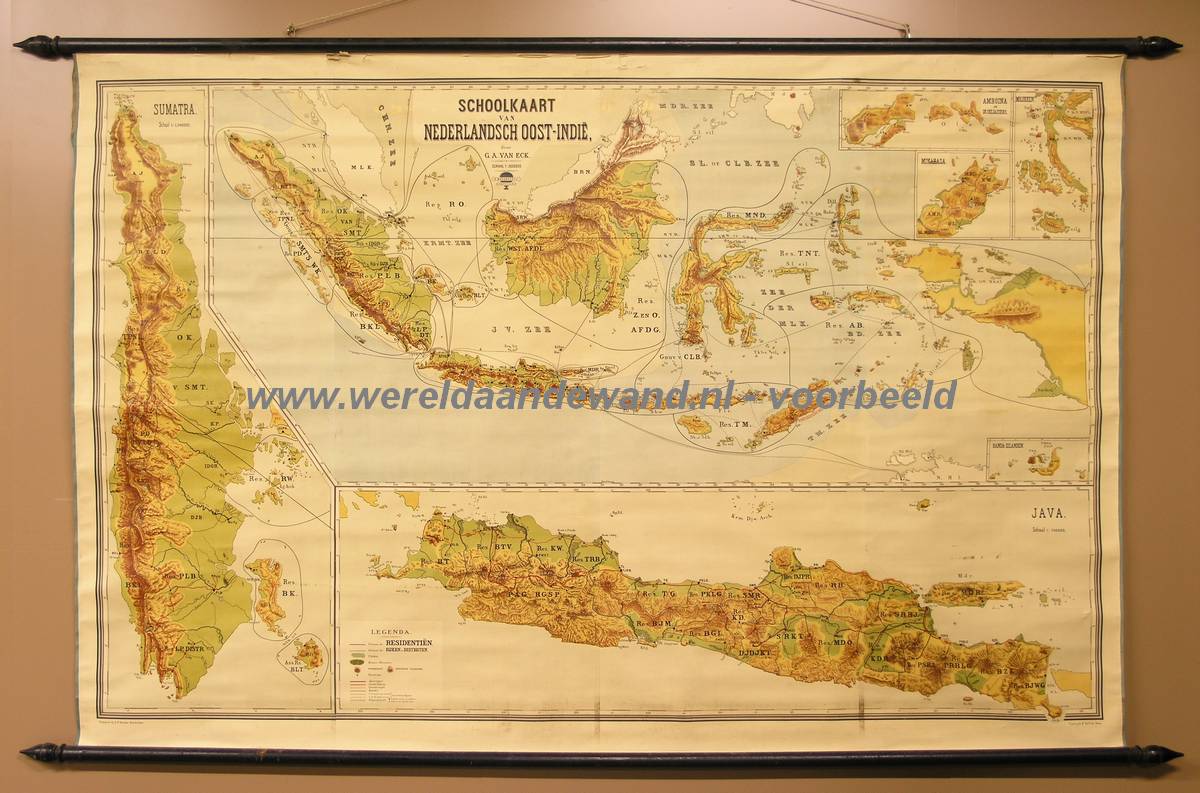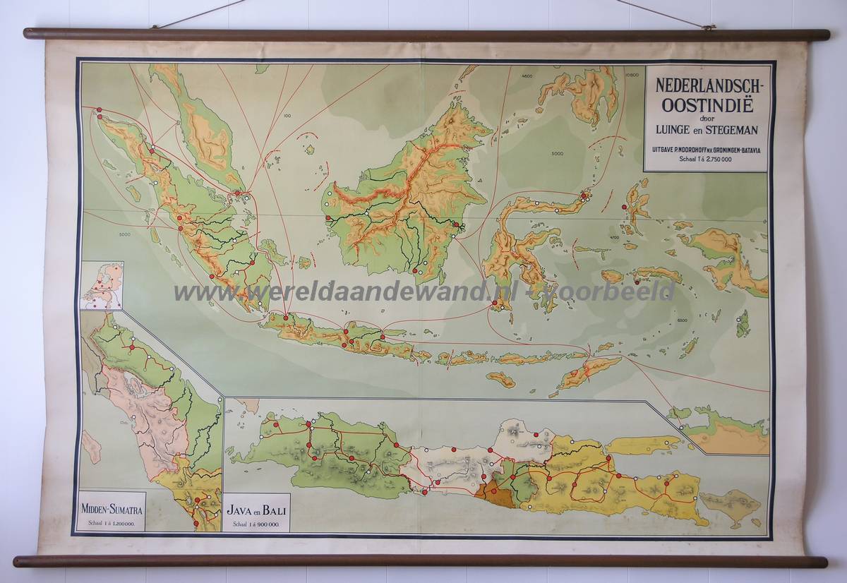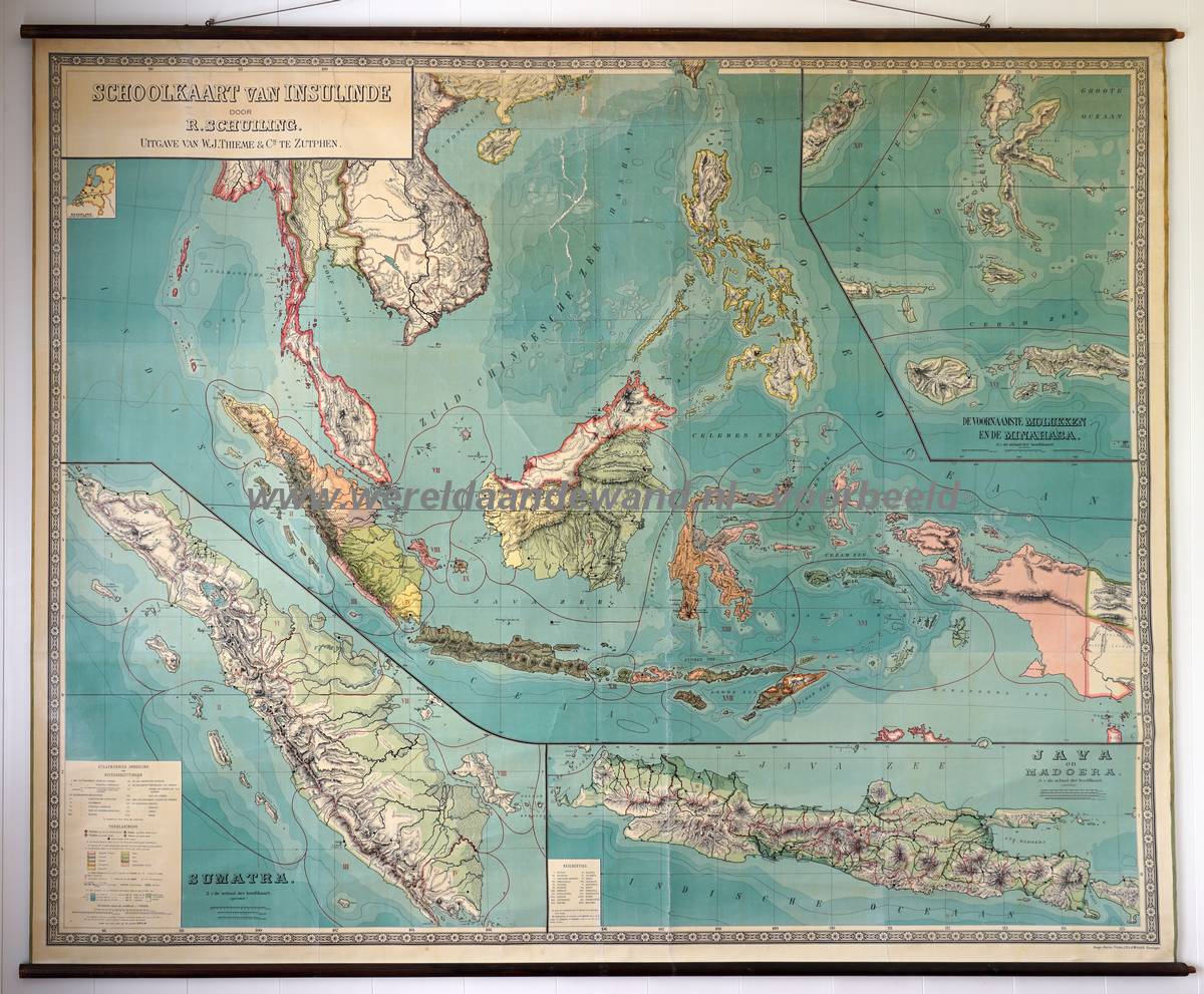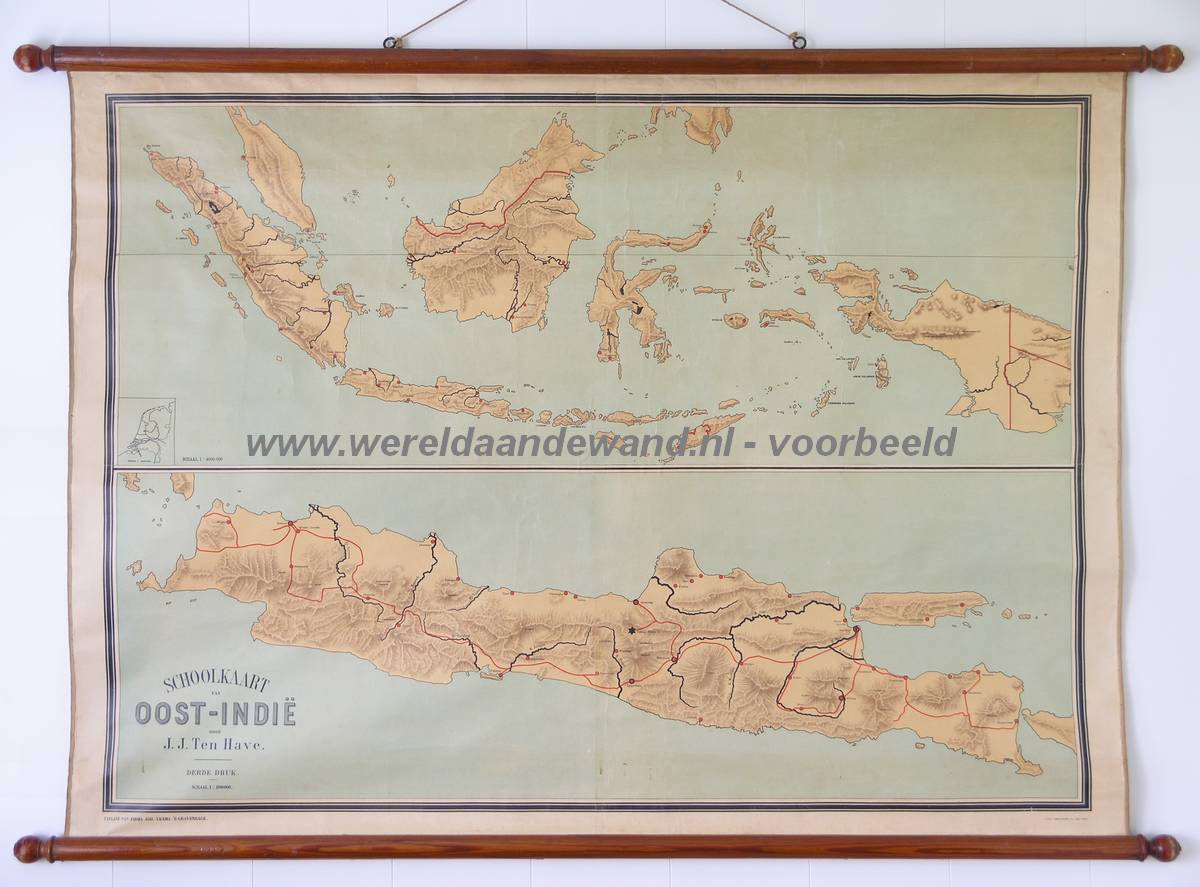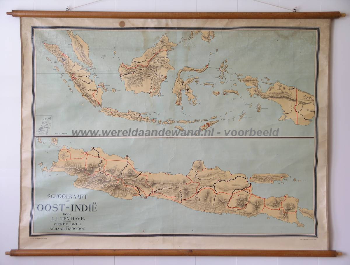 OIN_WO1EEerste schoolkaart van Nederlandsch-Indië met bijkaarten van Java en het cultuurgebied van S.O.K. P. Eibergen jaar: [ 1942 ] druk: [1e] omvang: 1 kaart in 2 bladen hoogte: 101 ( 113 ) cm breedte: 152 ( 163 ) cm schaal 1 : 3.500.000