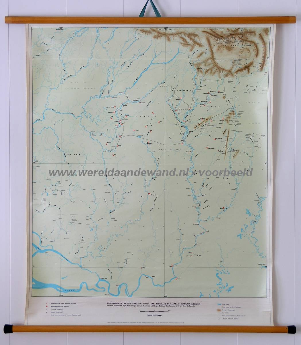 Opm.: kaart vermeldt: 'Topografie samengesteld uit top. bladen, uitgave Topografische Dienst te Delft, aangevuld met gegevens zendingsgebied Gereformeerde Kerken in Irian-Jaya Indonesia. Samenstelling: Geo-Meetdienst b.v. Spakenburg.' |
