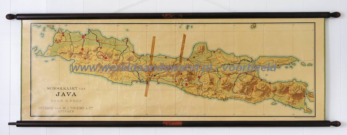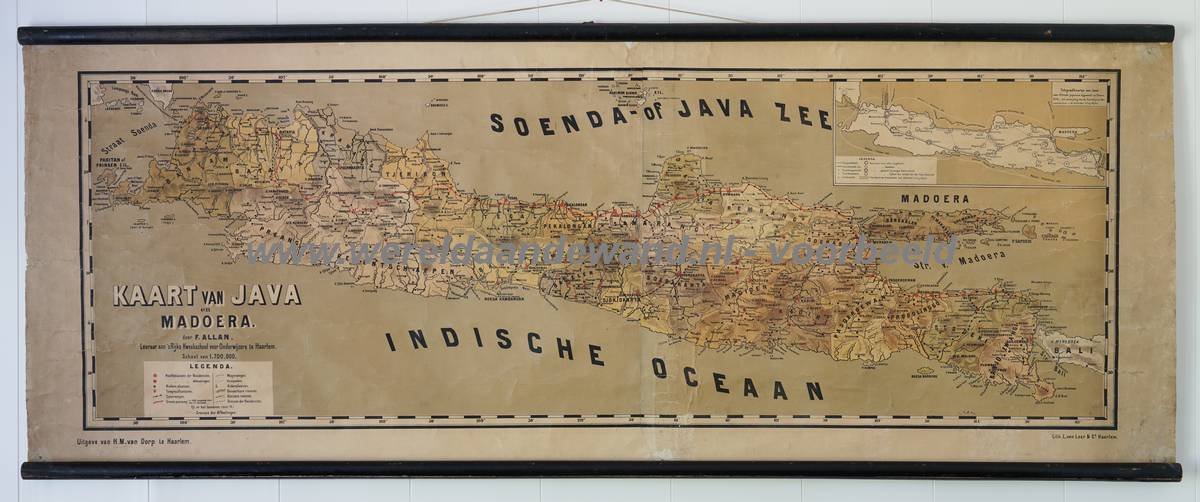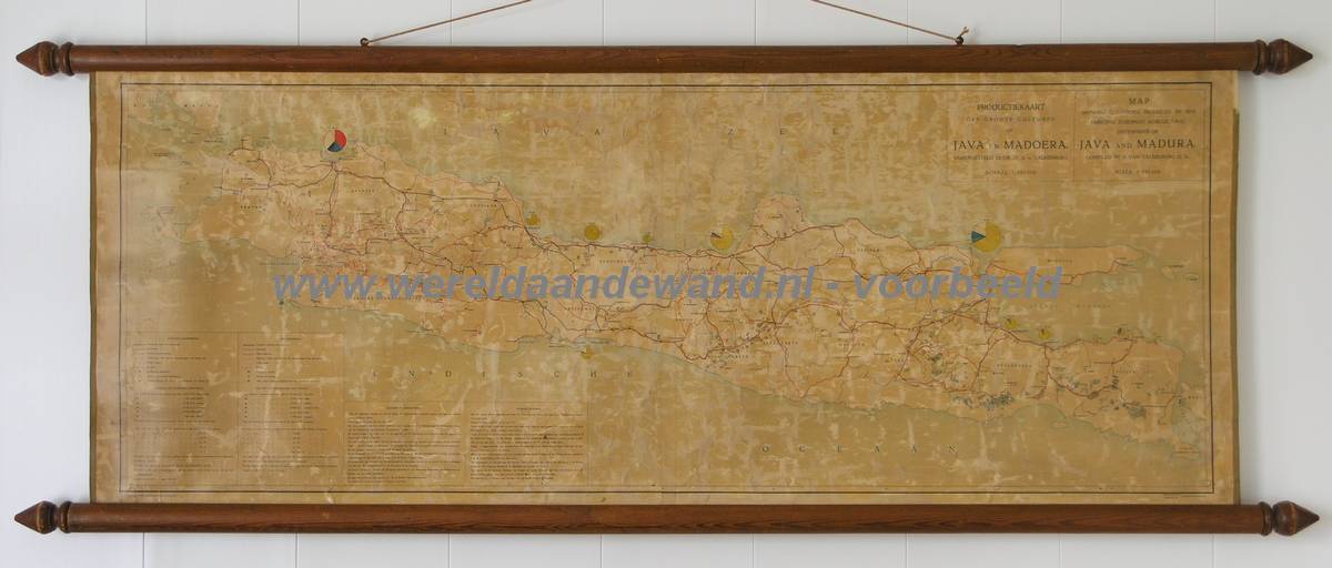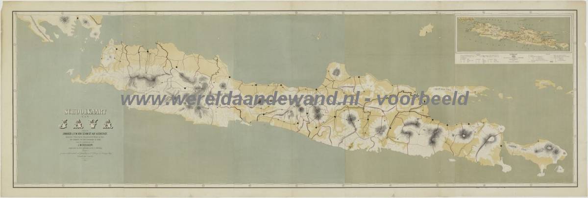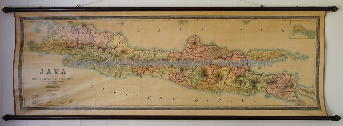 Opm.: De bijkaart van Java was vanaf de tweede druk ook afzonderlijk verkrijgbaar (zie OIN_WO1J). Vanaf de zevende druk was de wandkaart van Nederlands Oost-Indië leverbaar met en zonder de bijkaart van Java. |