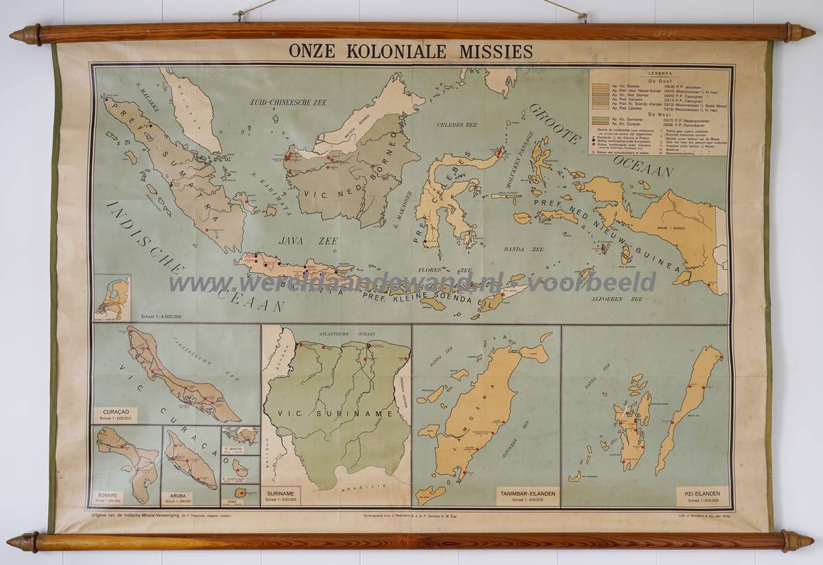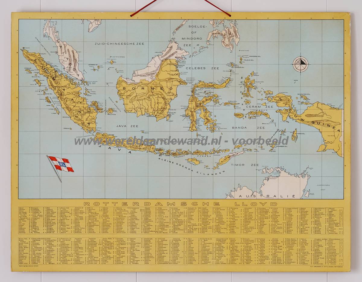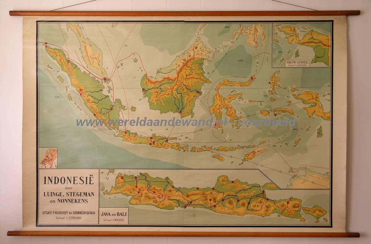 Variant: titel 'Oost-Indië' uitgesneden en nieuwe titel 'Indonesië' opgeplakt |