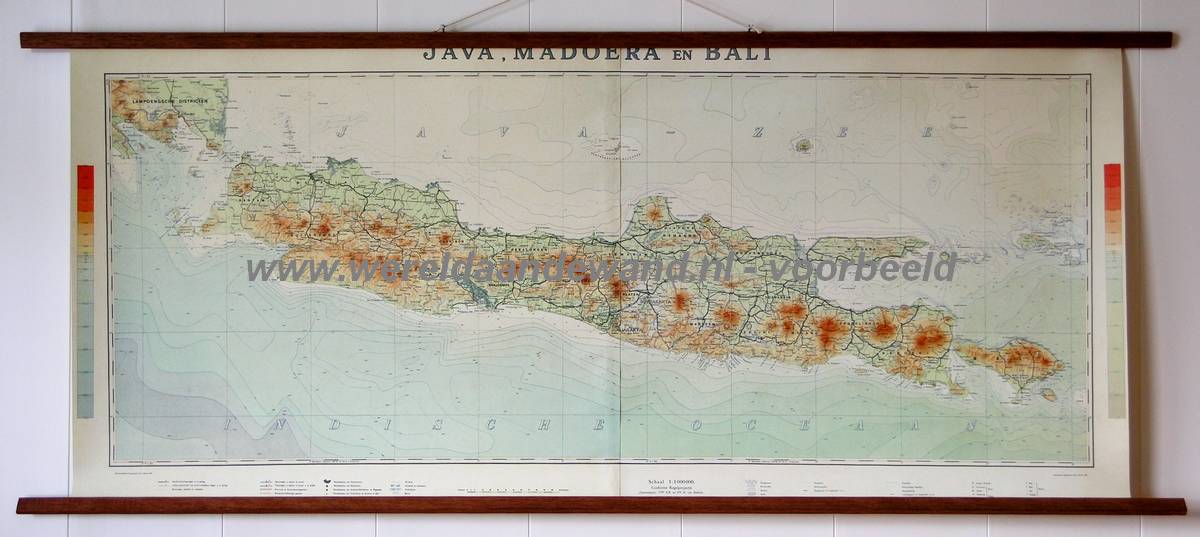 OIN_WO8CWandkaart van Nederlandsch-Indië / Java en Madoera en de residentie Bali en Lombok W. van Gelder, C. Lekkerkerker jaar: [ 1932 ] druk: 8e (Java 7e druk) omvang: 1 kaart in 6 bladen hoogte: 158 ( 173 ) cm breedte: 208 ( 222 ) cm schaal 1 : 2.500.000 / 1 : 625.000 |