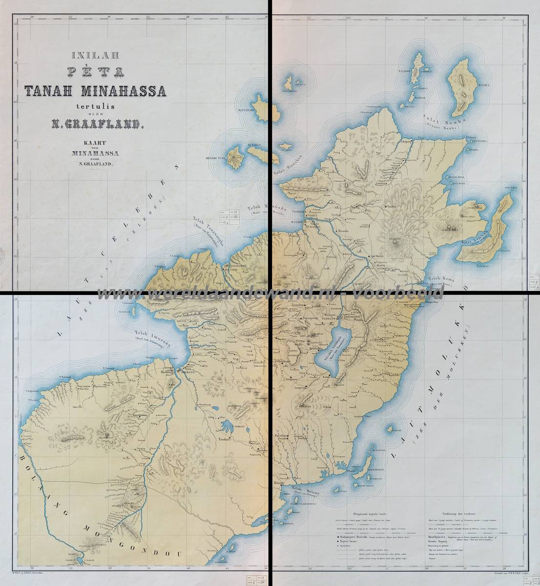 OIN_WI3MInilah peta tanah Minahassa (Kaart der Minahassa) N. Graafland jaar: [ ca. 1877 ] druk: 3e omvang: 1 kaart in 4 bladen |