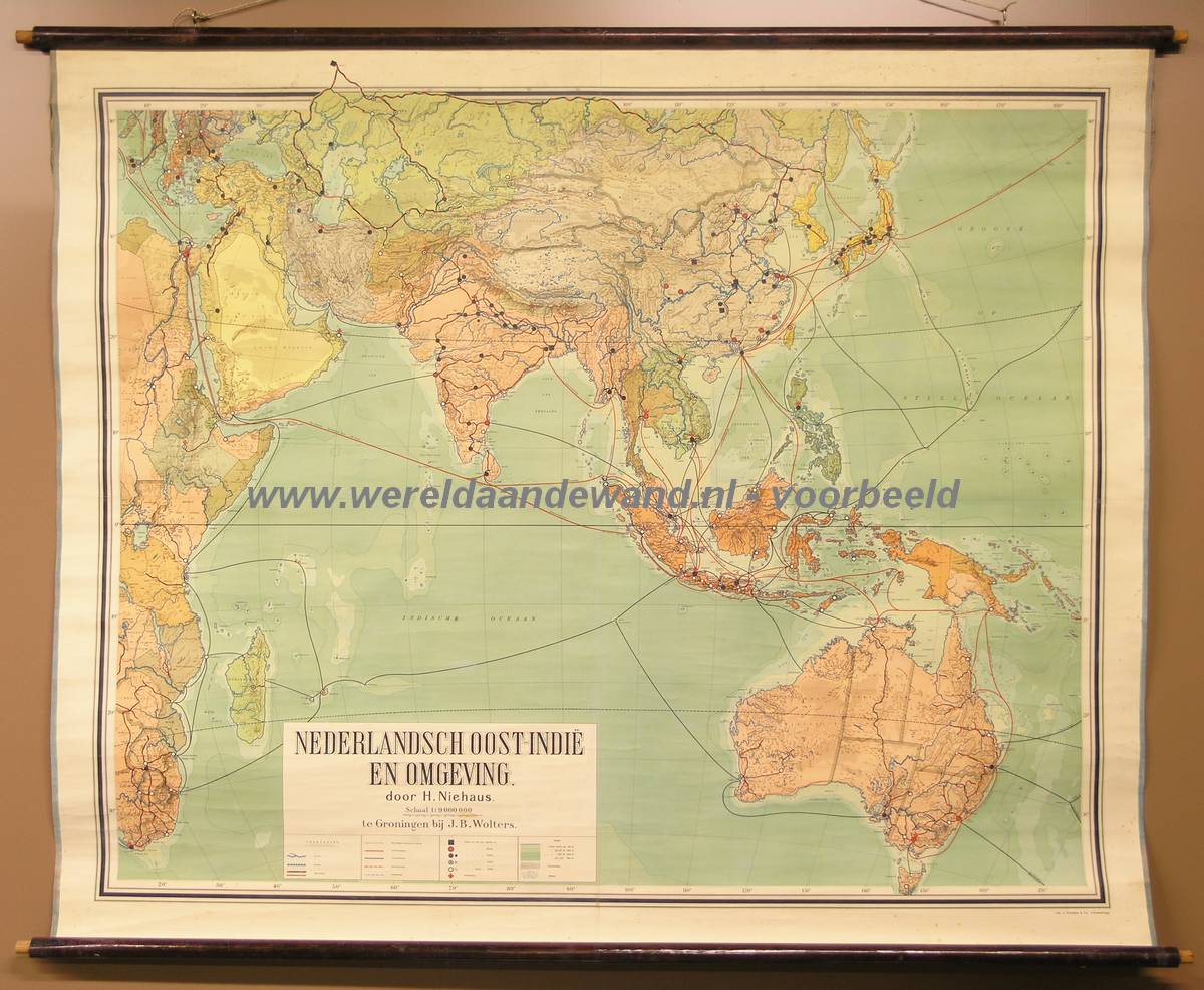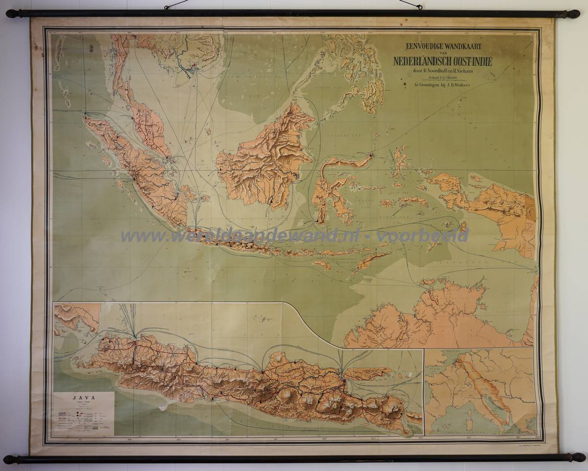 OIN_WO_NEenvoudige wandkaart van Nederlandsch Oost-Indië R. Noordhoff, H. Niehaus jaar: 1916 drukker: Den Haag : J. Smulders & Co. omvang: 1 kaart in 6 bladen hoogte: 166 ( 182 ) cm breedte: 201 ( 219 ) cm schaal 1 : 2.750.000