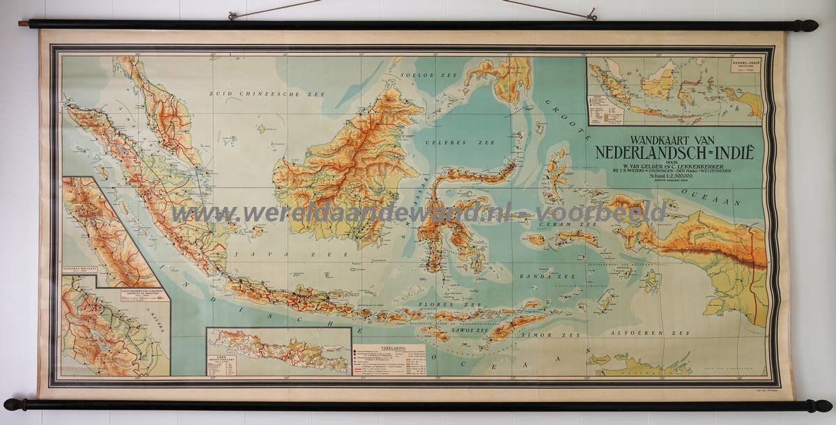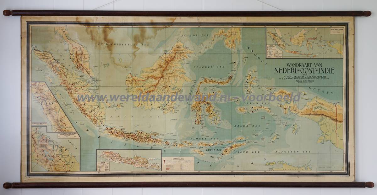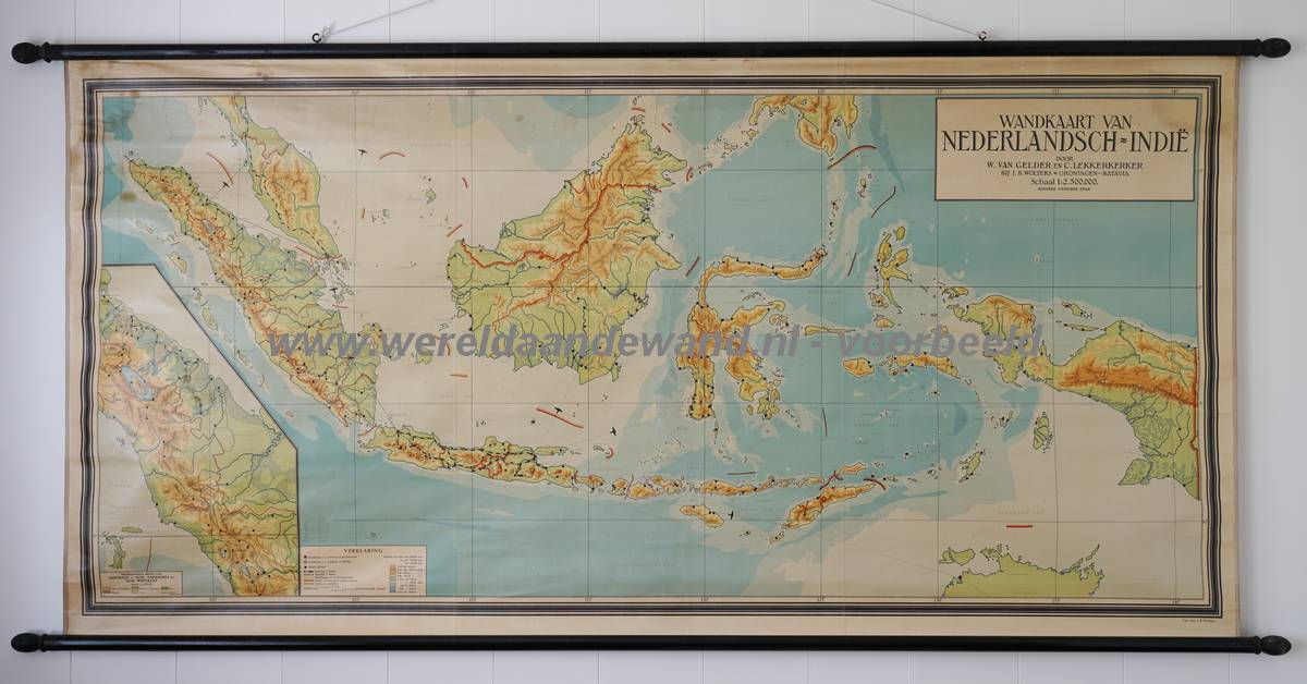 OIN_WO9BWandkaart van Nederlandsch-Indië W. van Gelder, C. Lekkerkerker jaar: [ 1939 ] druk: 9e omvang: 1 kaart in 3 bladen hoogte: 95 ( 110 ) cm breedte: 207 ( 222 ) cm schaal 1 : 2.500.000