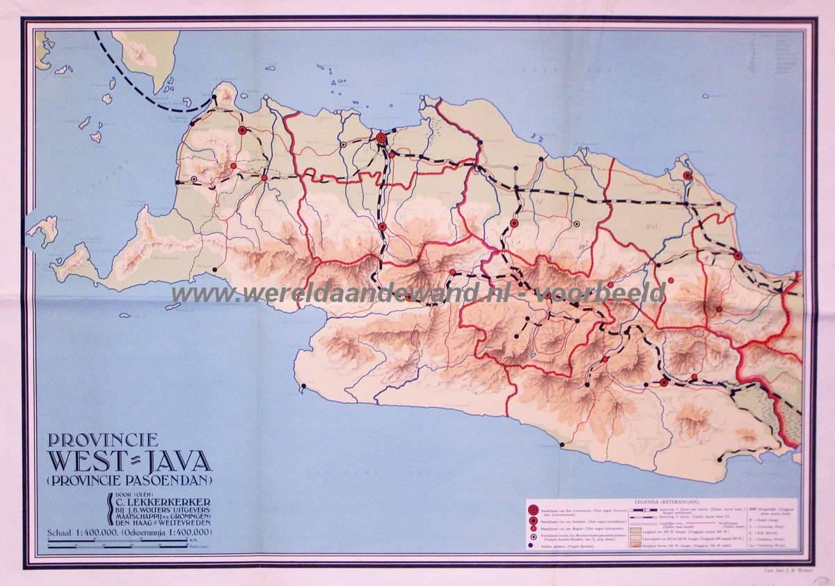 OIN_WO_WProvincie West-Java (Provincie Pasoendan) C. Lekkerkerker jaar: [ 1930 ] omvang: 1 kaartblad hoogte: 71 ( 85 ) cm breedte: 105 ( 118 ) cm schaal 1 : 400.000