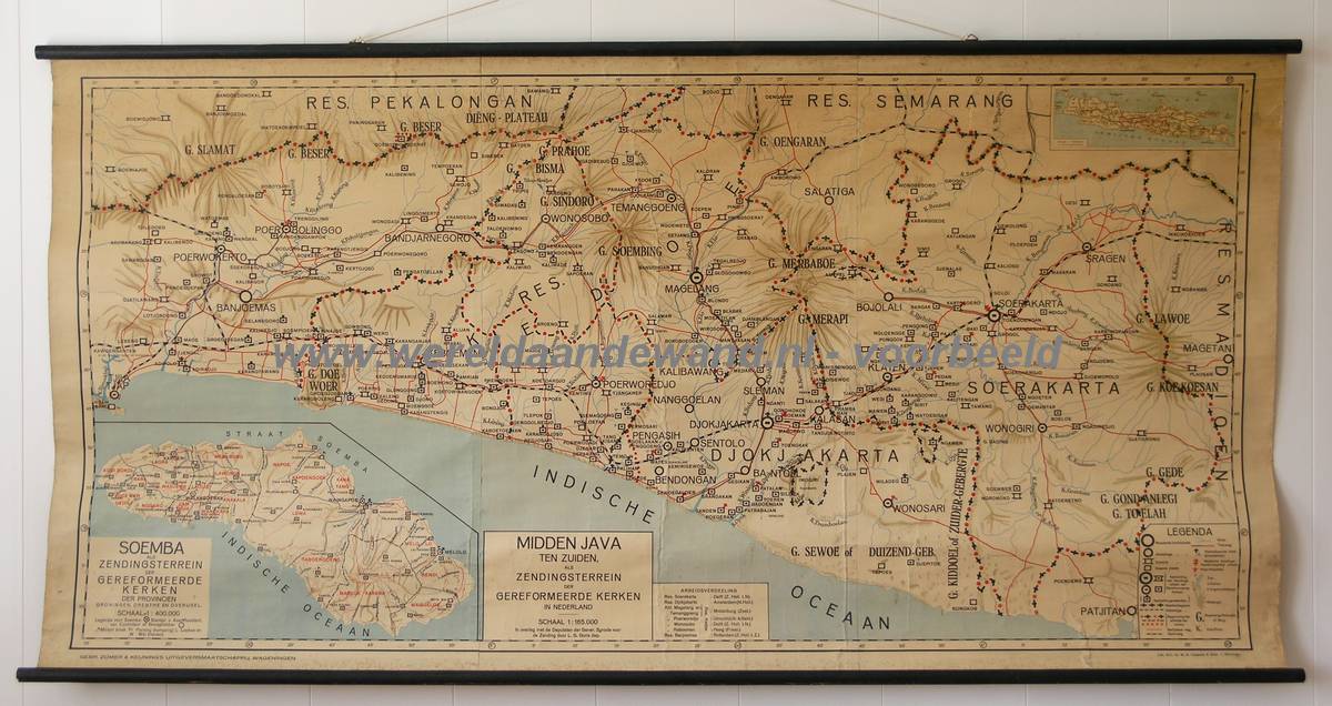 OIN_ZK_MMidden Java ten zuiden, als zendingsterrein der Gereformeerde Kerken in Nederland L.G. Goris jaar: [ 1926 ] drukker: Groningen : N.V. vh. W.R. Casparie & Zoon omvang: 1 kaart in 3 bladen hoogte: 77 ( 86 ) cm breedte: 159 ( 170 ) cm schaal 1 : 165.000