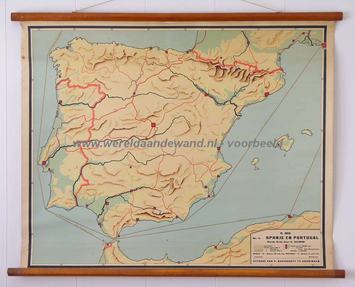 SPA_NO5Spanje en Portugal R. Bos, K. Zeeman, M.L. de Ley jaar: [ 1959 ] druk: 5e omvang: 1 kaartblad hoogte: 69 ( 74 ) cm breedte: 85 ( 92 ) cm schaal 1 : 1.500.000 |