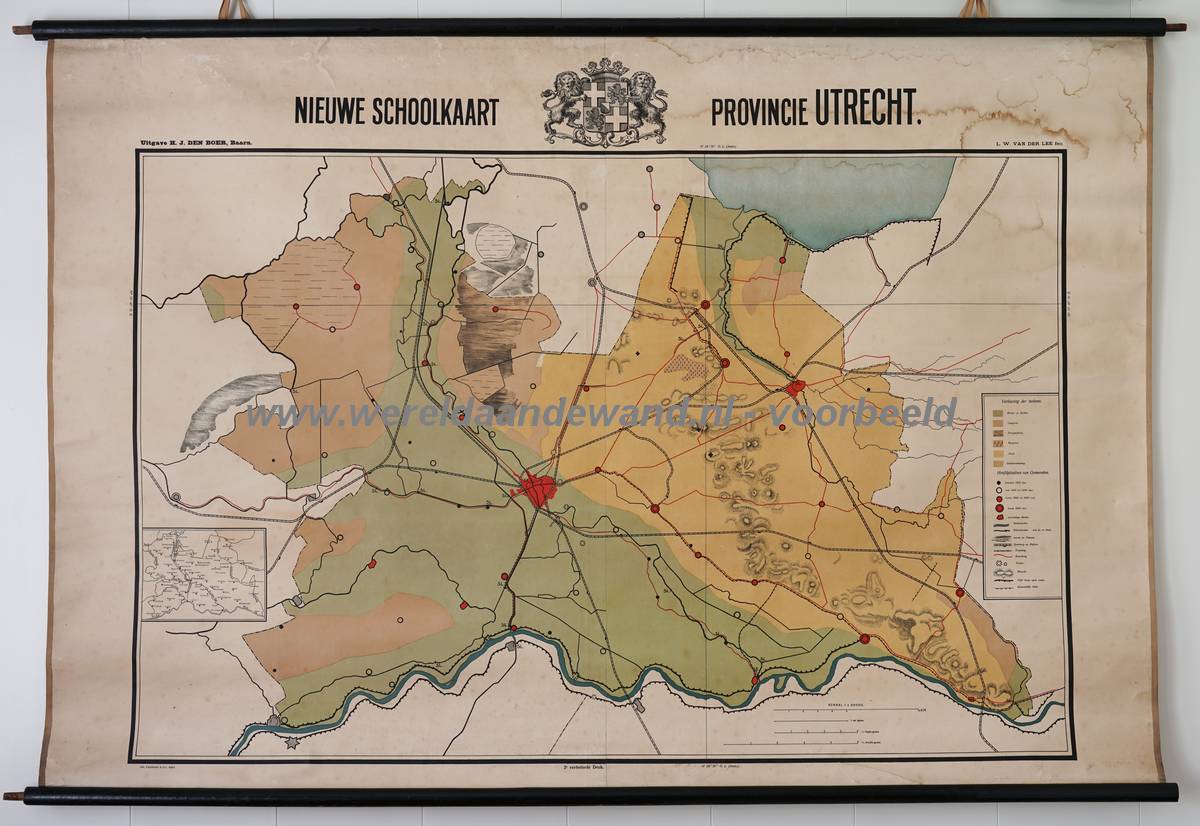 UTR_BD2Nieuwe schoolkaart provincie Utrecht L.W. van der Lee jaar: [ 1913 ] druk: 2e drukker: Amsterdam : Faddegon & Co. omvang: 1 kaart in 2 bladen hoogte: 83 ( 104 ) cm breedte: 128 ( 154 ) cm schaal 1 : 50.000