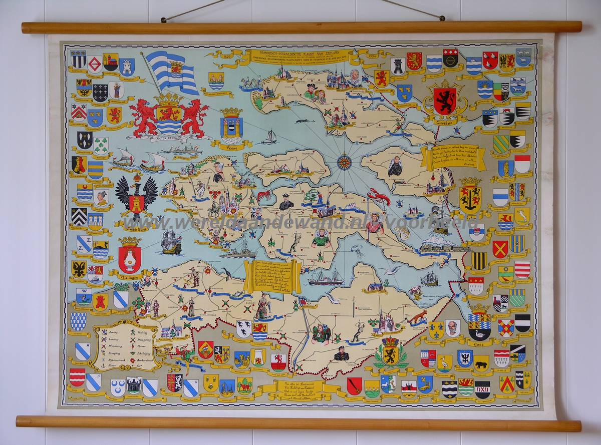 ZEE_OB2HHistorisch-heraldische kaart van Zeeland, uitgegeven ter gelegenheid van het 150-jarig bestaan van de Onderlinge Zeeuwse Waarborgmaatschappij u.a. A.P. Maas jaar: 1979 druk: [2e] drukker: Middelburg : Den Boer omvang: 1 kaartblad hoogte: 53 ( 57 ) cm breedte: 83 ( 88 ) cm schaal: niet vermeld